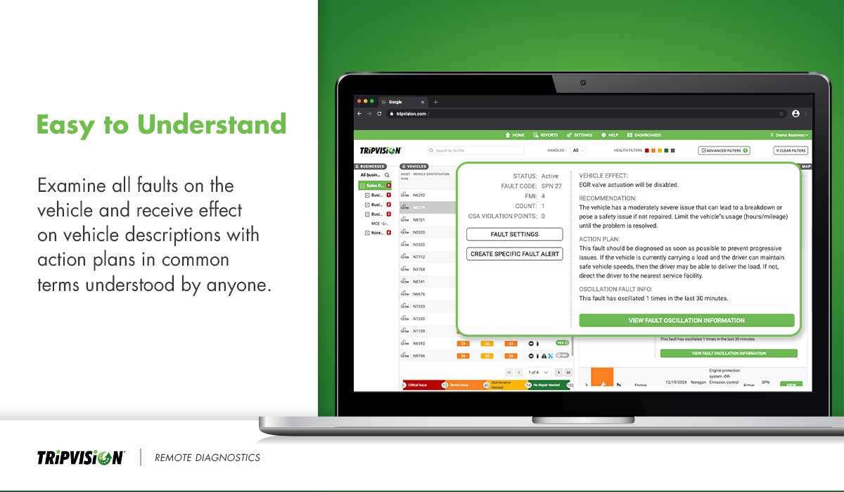 Easy to Understand: TripVision examines all faults on the vehicle and provides an effect on vehicle description and action plan in standard terms understood by anyone.